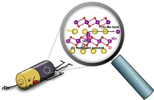 محققان دانشگاه کالیفرنیا دلیل اصلی فقدان ظرفیت در این نوع باتریها را کشف کردند: حضور غیر عمد هیدروژن که موجب تخریب ساختار الکترود باتری میشود. هیدروژن معمولاً در طی روند ساخت ماده کاتدی وارد باتری شده یا اینکه ممکن است ناشی از محیط اطراف یا الکترولیت باتری باشد. به منظور بررسی اثر هیدروژن بر ساختار ماده کاتدی از روشهای کامپیوتری برای پیشبینی ساختار و اثرات شیمیایی ناشی از حضور ناخالصیها استفاده شده است.