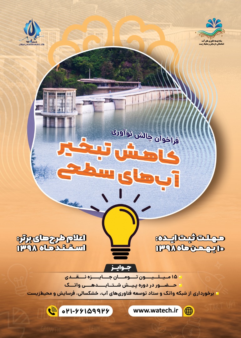 با توجه به اهمیت موضوع تبخیر و هدر رفت آبهای سطحی و همچنین کمبود منابع در ایران شتابدهنده واتک با همکاری ستاد توسعه فناوریهای آب خشکسالی فرسایش و محیط زیست معاونت علمی و فناوری رویداد «کاهش تبخیر آبهای سطحی» را برگزار میکند.