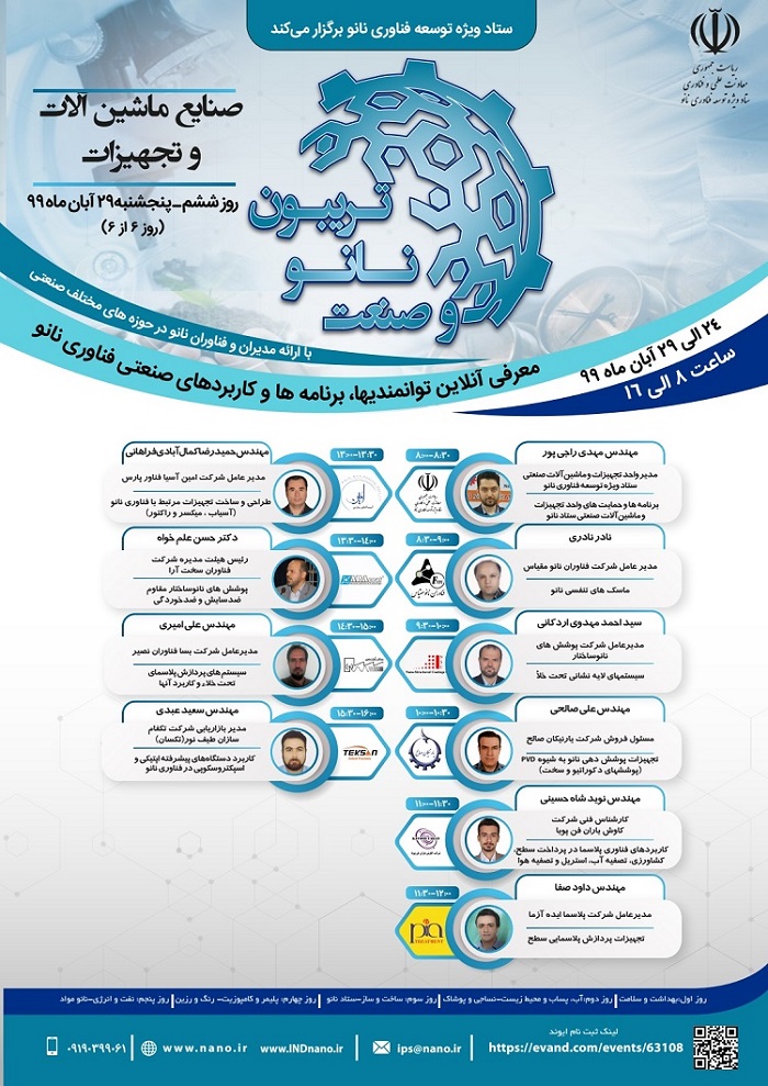 به منظور ترویج صنعتی فناوری نانو و معرفی آخرین دستاوردهای این حوزه، رویداد «تریبون نانو و صنعت» با حمایت ستاد ویژه توسعه فناوری نانو و با همکاری شرکتهای فناوری نانو و ارائه مدیران، کارشناسان، محققان و فناوران فعال در این حوزه در هفته پایانی آبان ماه سال جاری، به صورت آنلاین برگزار میشود. هدف از برگزاری این رویداد، معرفی توانمندیهای موجود در حوزههای مختلف از جمله تجهیزات و ماشینآلات مرتبط با فناوری نانو به شرکتها، سازمانها، جامعه صنعتی کشور و عموم علاقمندان و فعالان این حوزه میباشد.